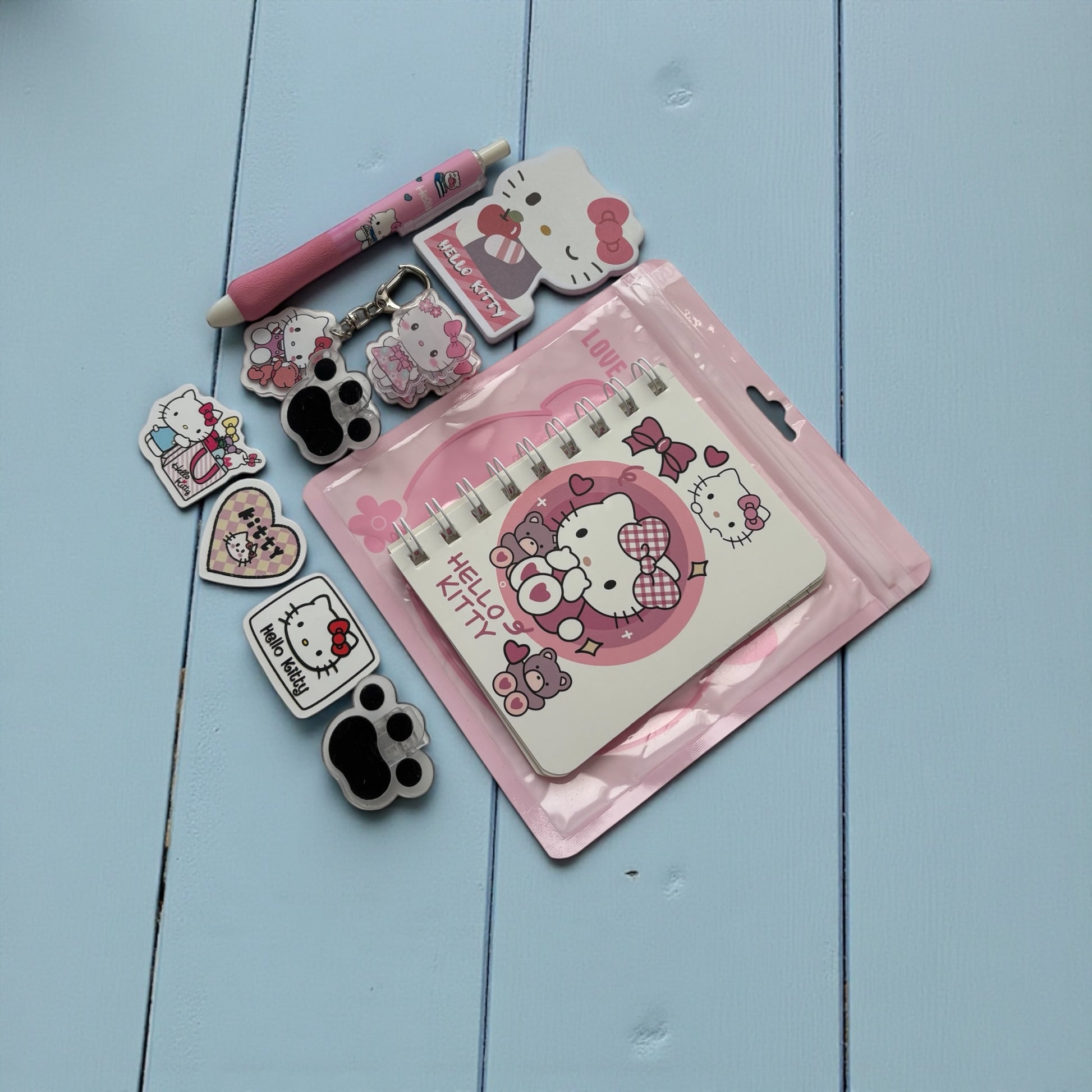 This adorable stationery set includes a mini Hello Kitty notebook plus everyday essentials. Perfect for small gifts, school supplies, journaling, or kawaii lovers.